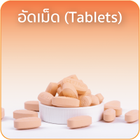 อาหารเสริมรูปแบบตอกเม็ด อัดเม็ด หรือแท็บเล็ต (Tablets) บรรจุสารสกัดได้ปริมาณมาก เม็ดไม่ใหญ่เกินไป จัดเก็บได้สะดวกกว่า