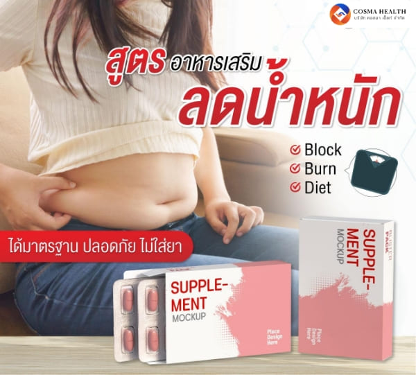 เราพร้อมพัฒนาสูตรอาหารเสริมลดน้ำหนักสูตร บล็อกแป้ง บล็อกไขมัน, เบิร์นเพิ่มเผาผลาญ, อิ่มง่ายอยู่ท้อง และทุกสูตรในแบบที่คุณต้องการ